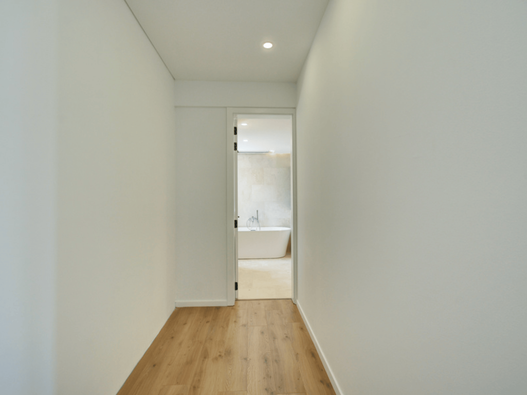 Every element is carefully considered. From minimalist lighting channels to built-in storage and custom-crafted thresholds, the level of detailing elevates the entire space. The exposed steel structure is not concealed but celebrated, giving the apartment a confident modern identity while respecting its architectural heritage.