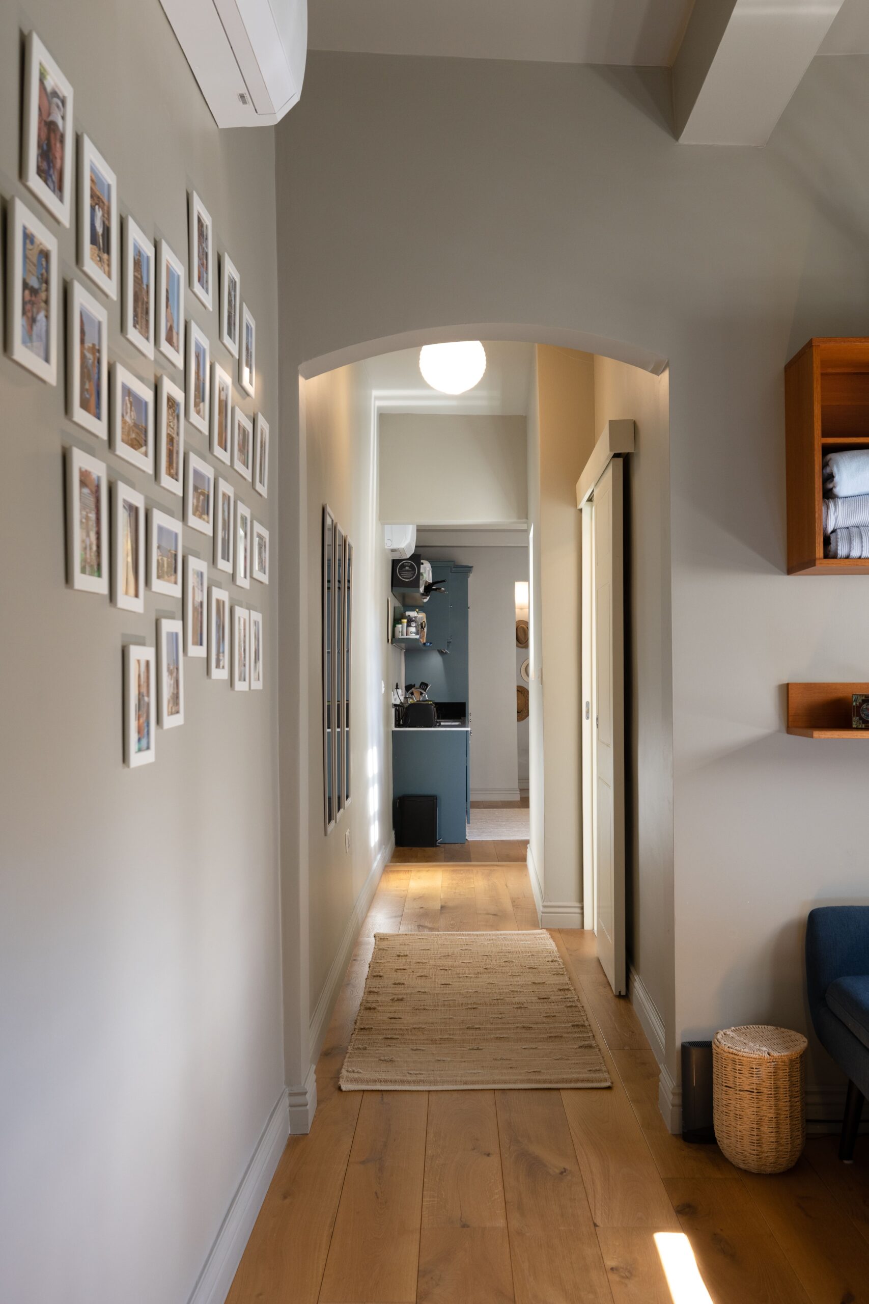 From the softly lit hallway with its gallery of family moments, to the elegant mix of traditional joinery and contemporary finishes in the kitchen — this restoration balances comfort, craftsmanship, and character.